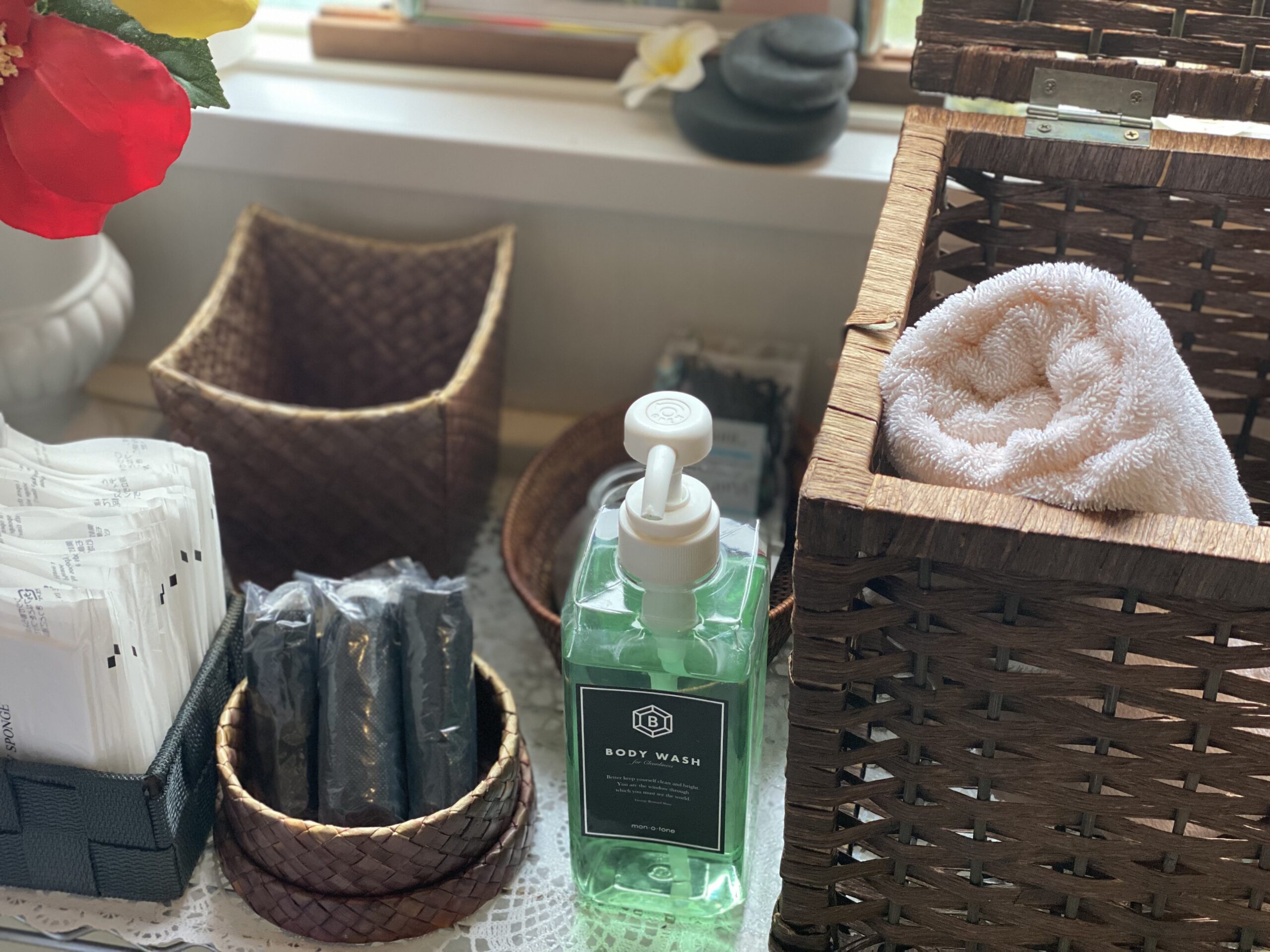 ホテル又はご自宅のタオル2〜3枚ご準備ください。